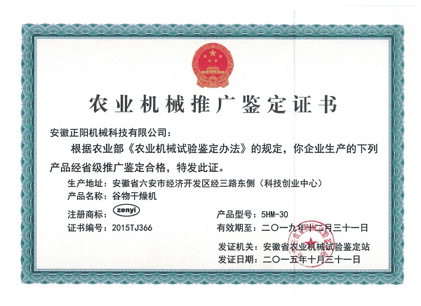 農(nóng)業(yè)機(jī)械推廣鑒定證書(shū)(1)